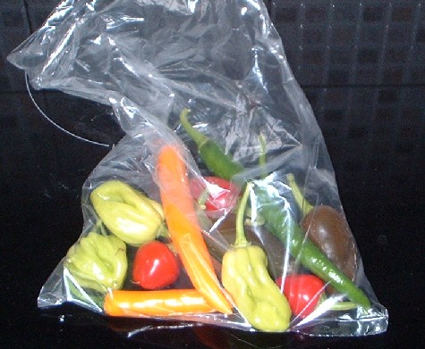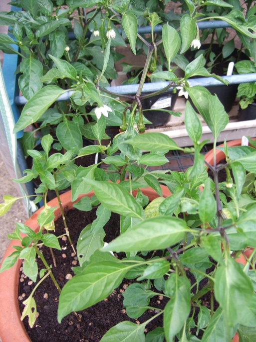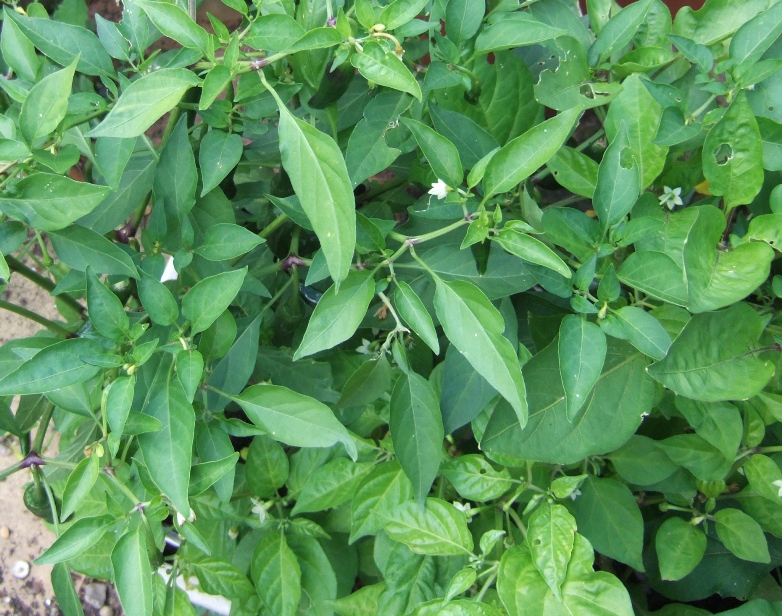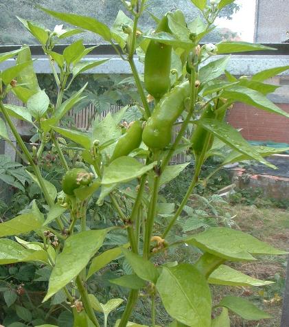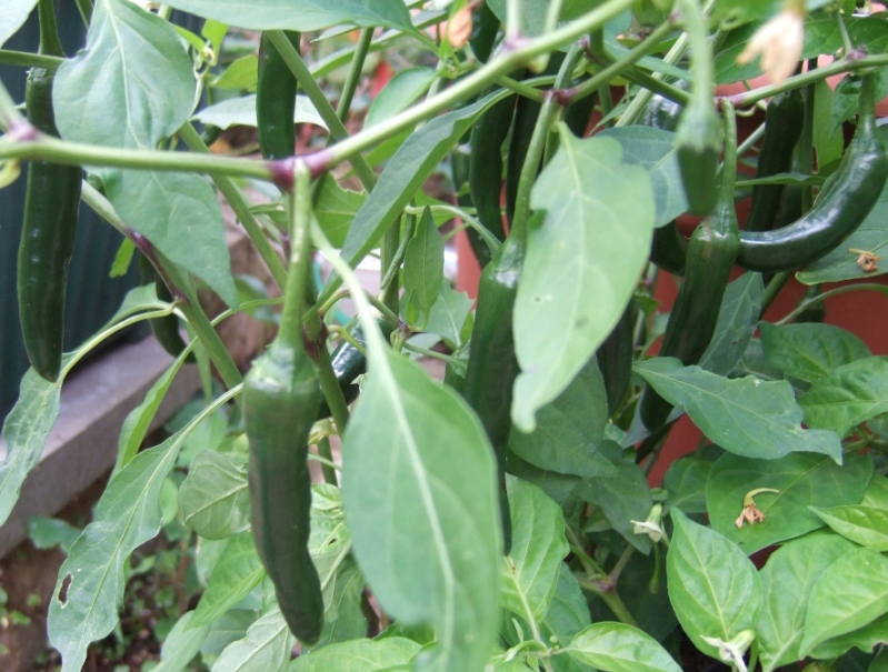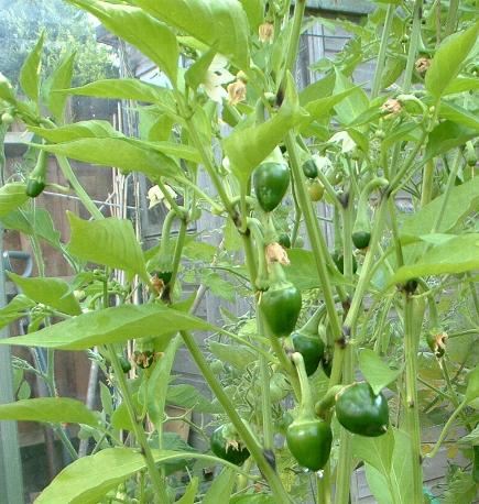 Long slender fruits reaching up to 25cm long. A very close resemblance to Joes Long Cayenne, although it did make slightly taller plants. Ripens dark green to red. |