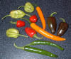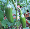 Chilli Pepper Jalapeno, 3" (7-8cm) fruits with thick walls, continuous fruit setting, used for hot pepper eating contests in the USA. Fruits ripen from green to red. A very hot pepper. Used on nachos and chopped in Mexican sauces giving them an excellent flavour. |